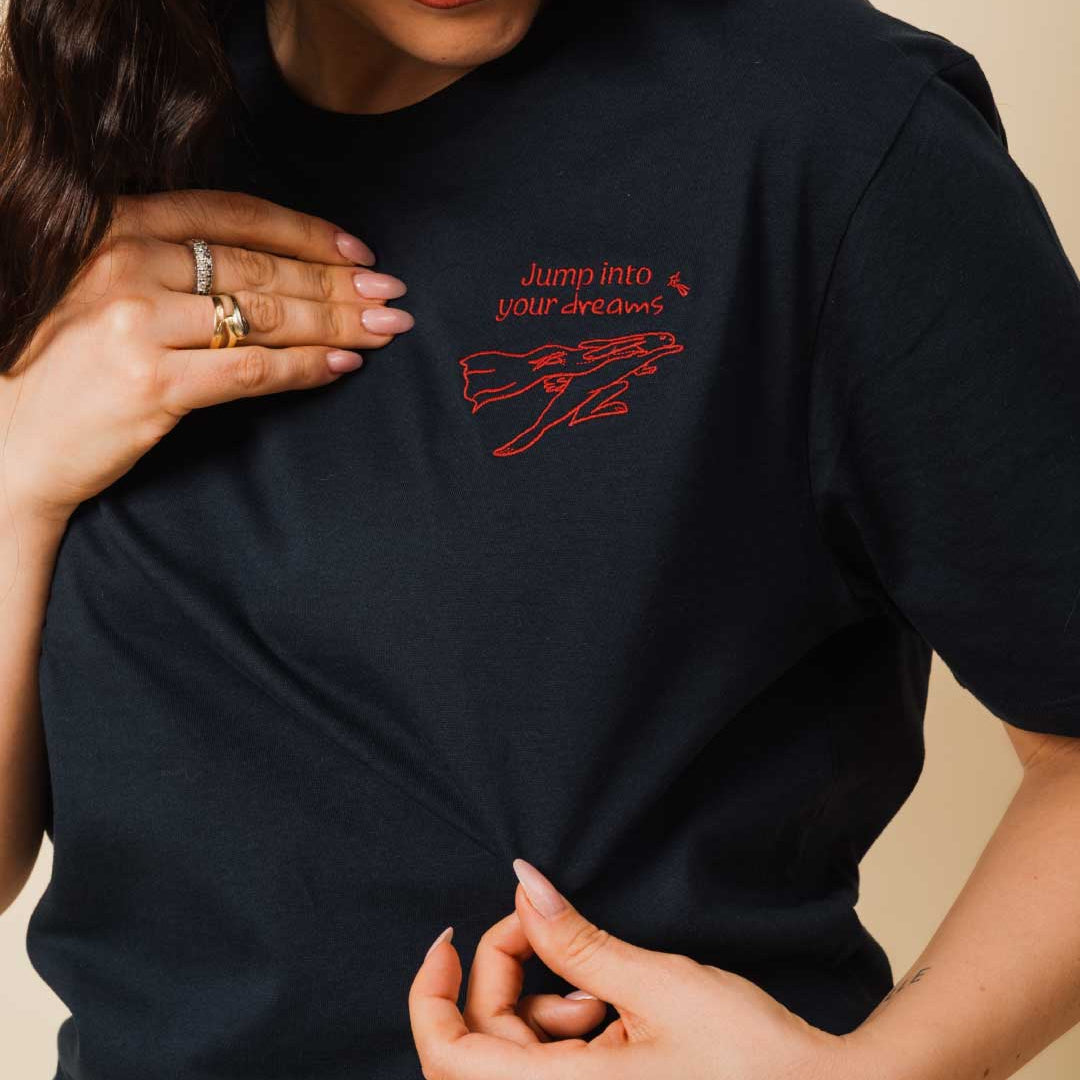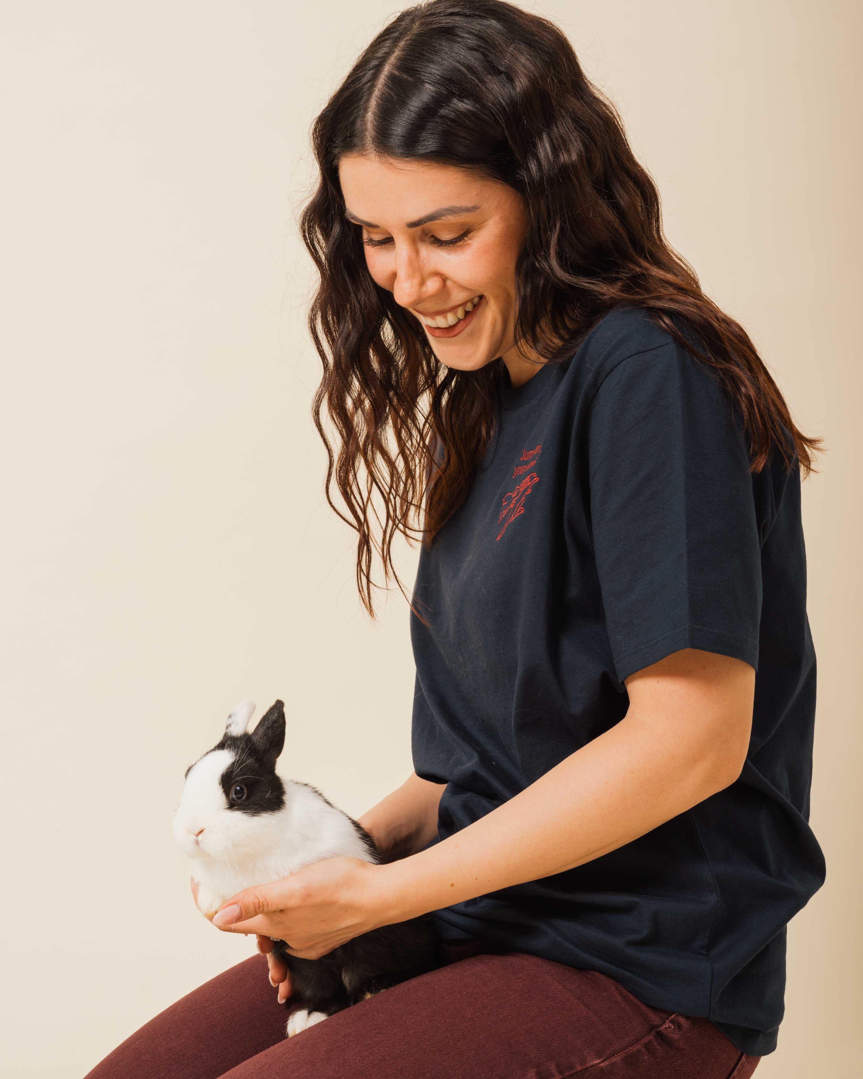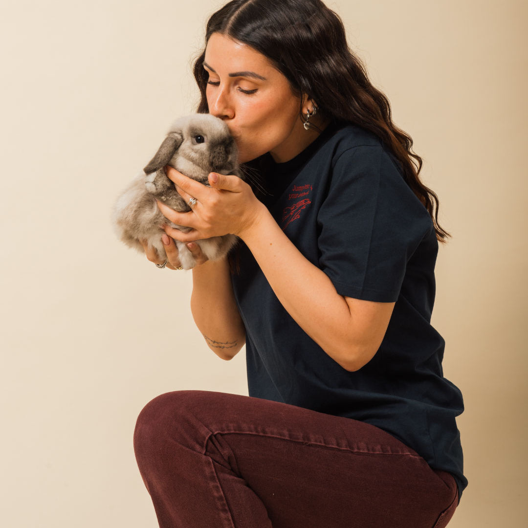 Chi ama i conigli lo sa: quando il cuore è leggero, si salta più in alto. La T‑shirt Superbunny è un invito all’azione: prendere la rincorsa, fare un binky e volare dritti verso ciò che ti fa brillare dentro.