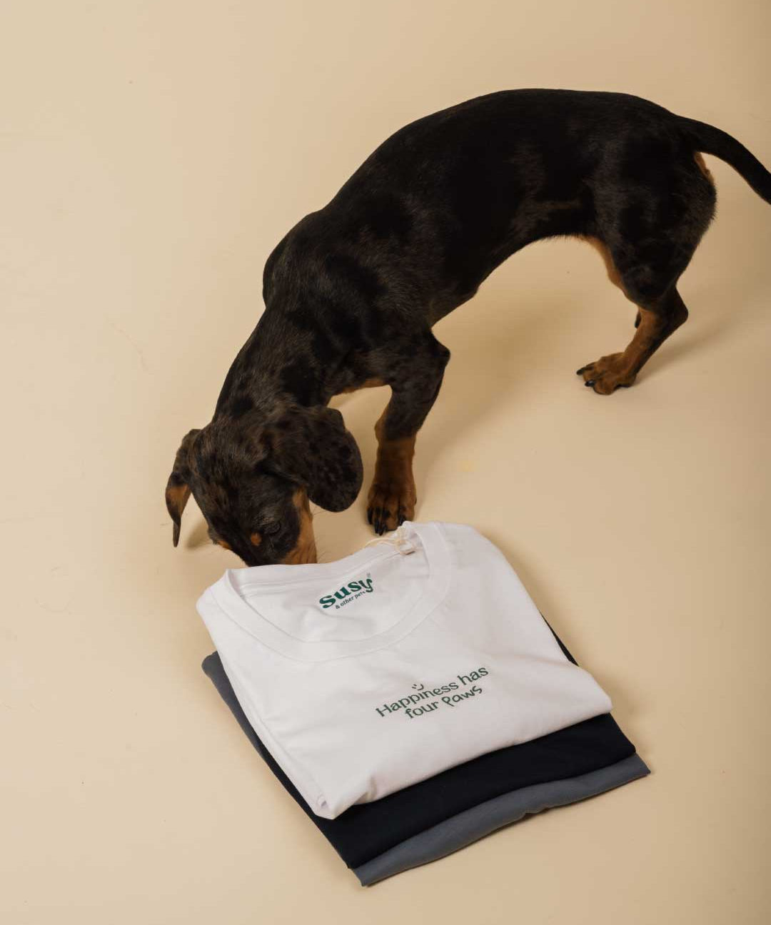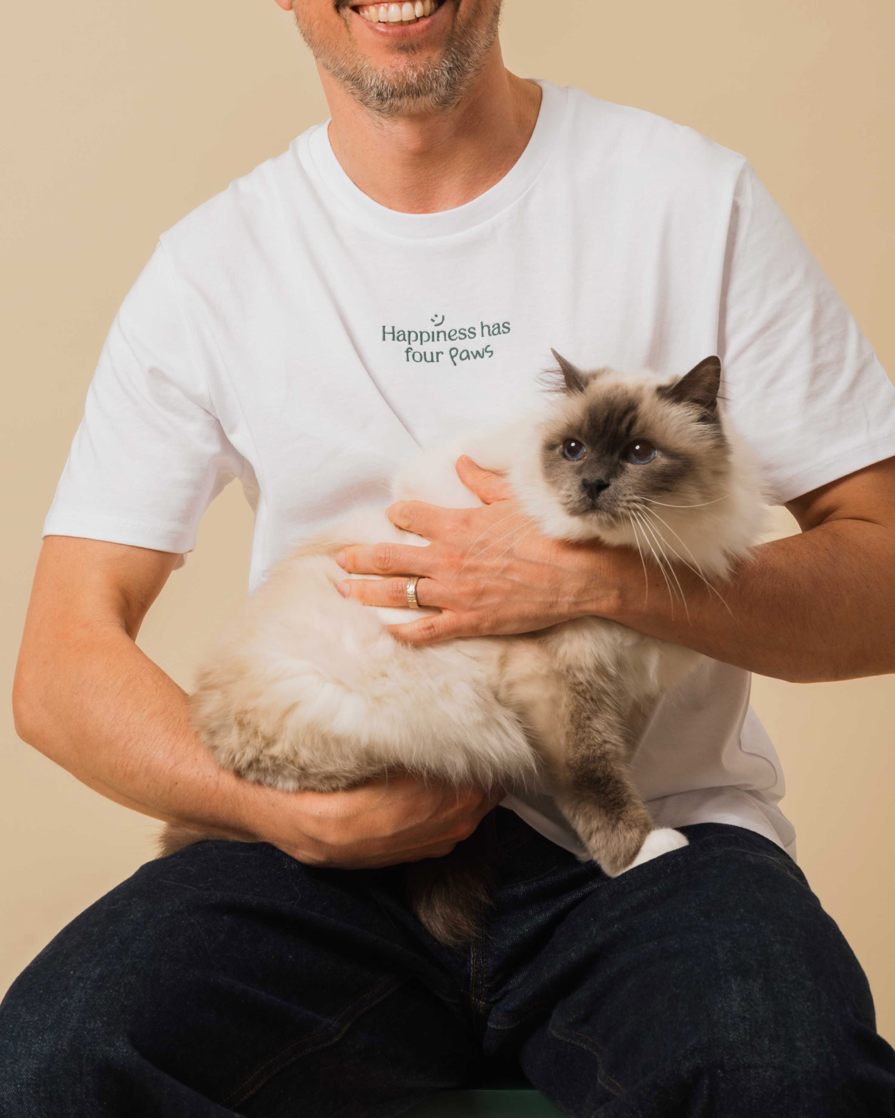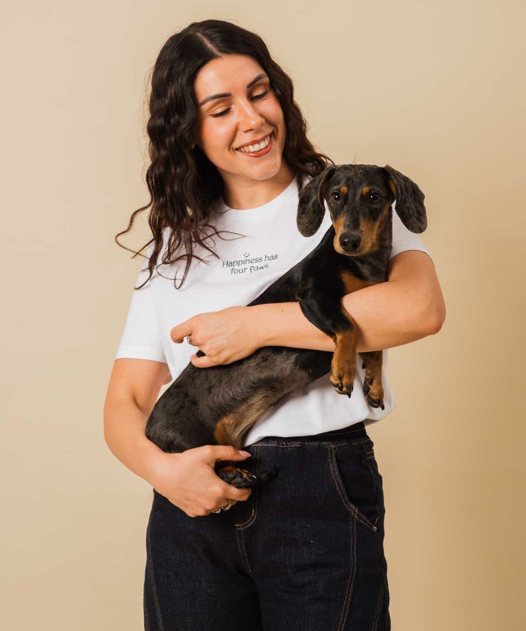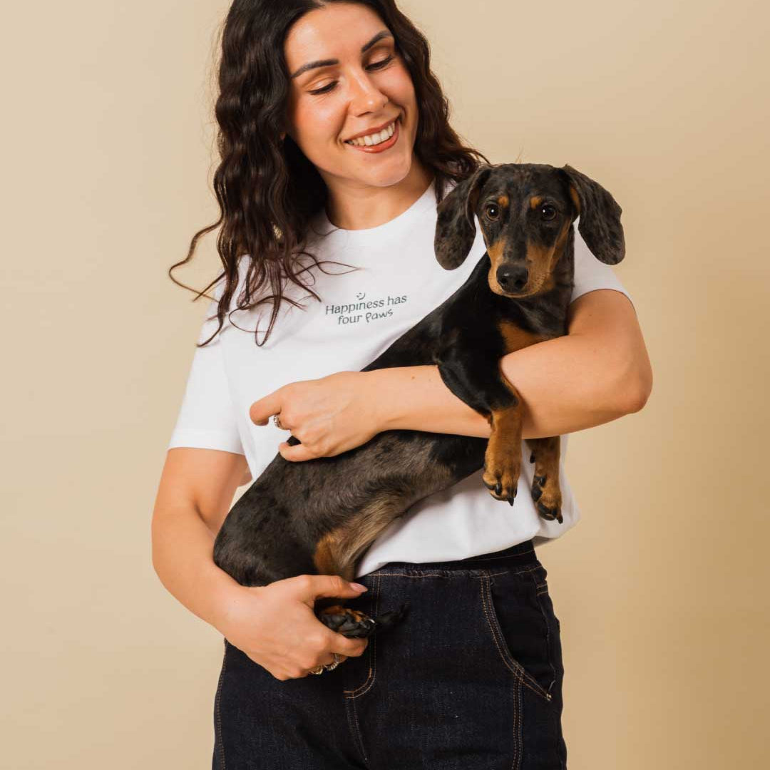 Happiness needs no words: it arrives silently, on four paws and with a look that says it all. The Happy Paws T-shirt is soft and comfortable, designed for those who share their days with a furry friend and know that their presence is enough to make them feel at home.