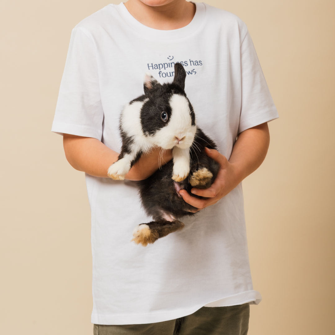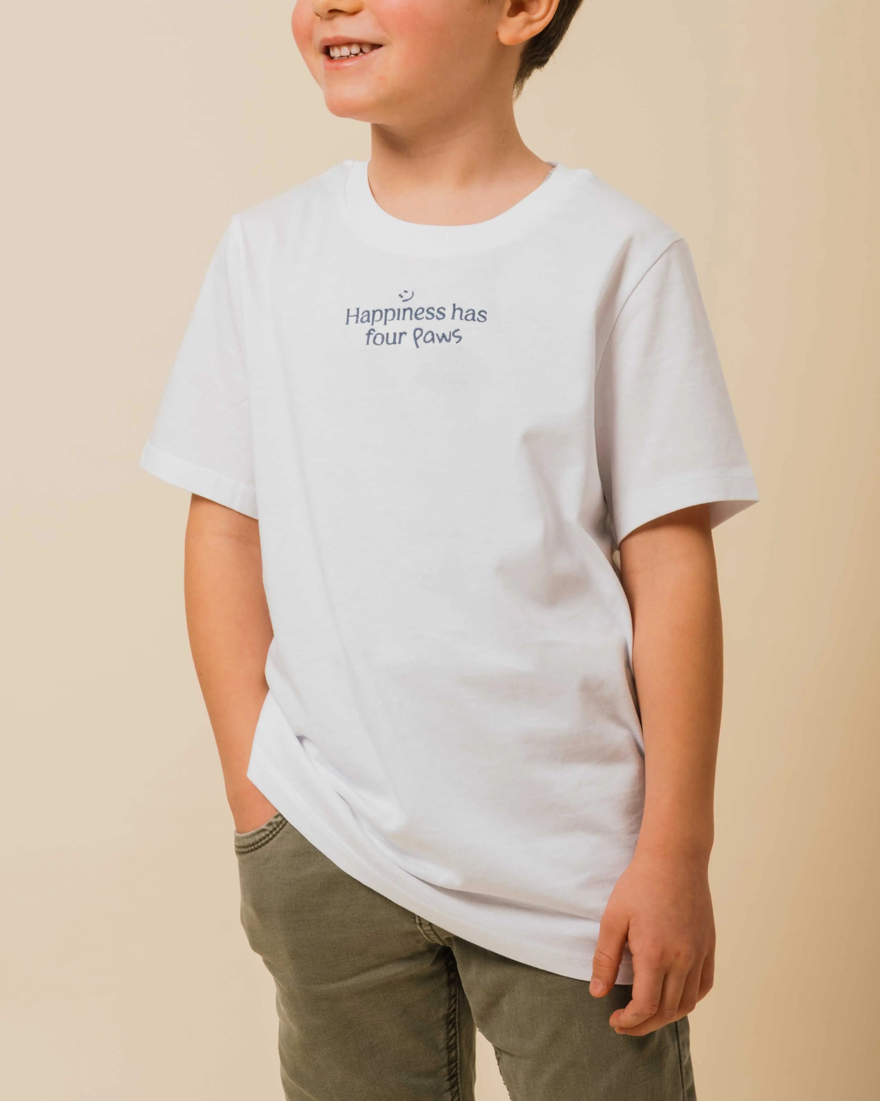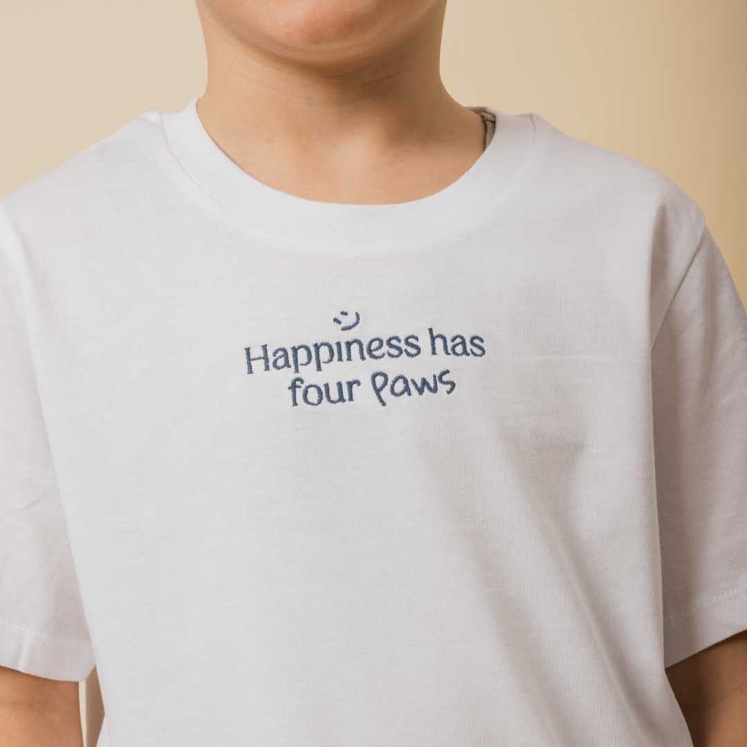 Paws, whiskers, and lots of love: the Happy Paws T-shirt is designed for boys and girls who grow up with a furry friend and wear happiness on their sleeves.