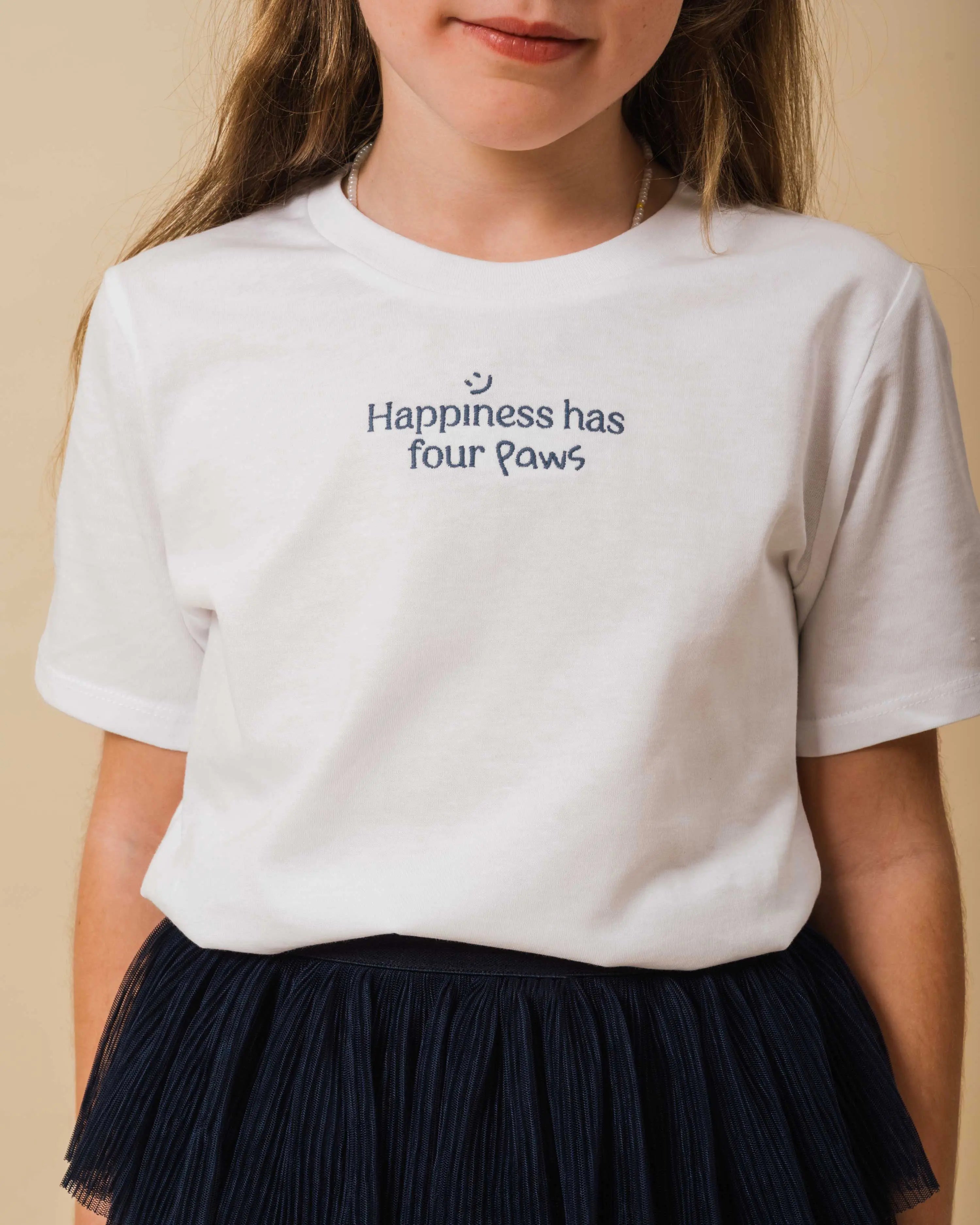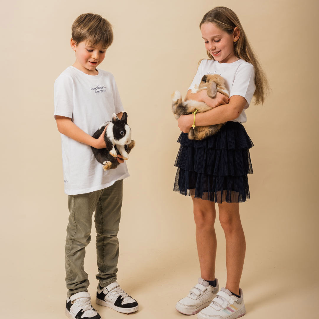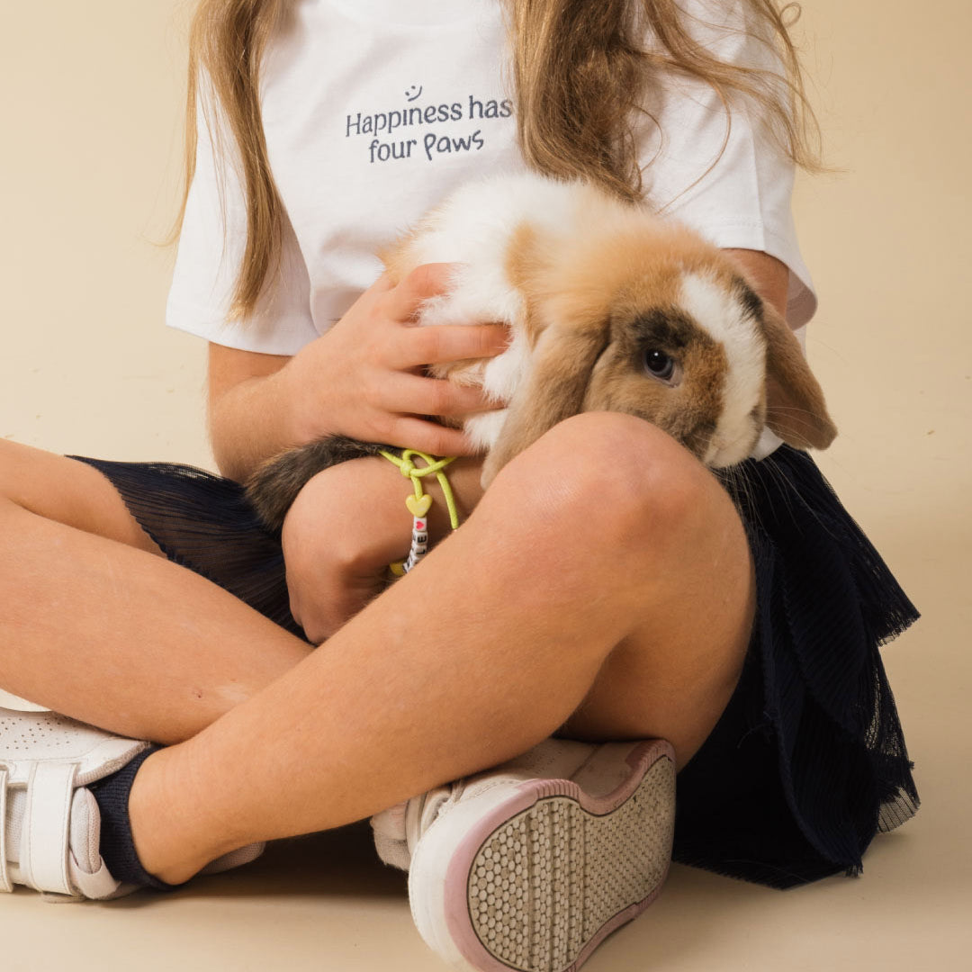 Paws, whiskers, and lots of love: the Happy Paws T-shirt is designed for boys and girls who grow up with a furry friend and wear happiness on their sleeves.