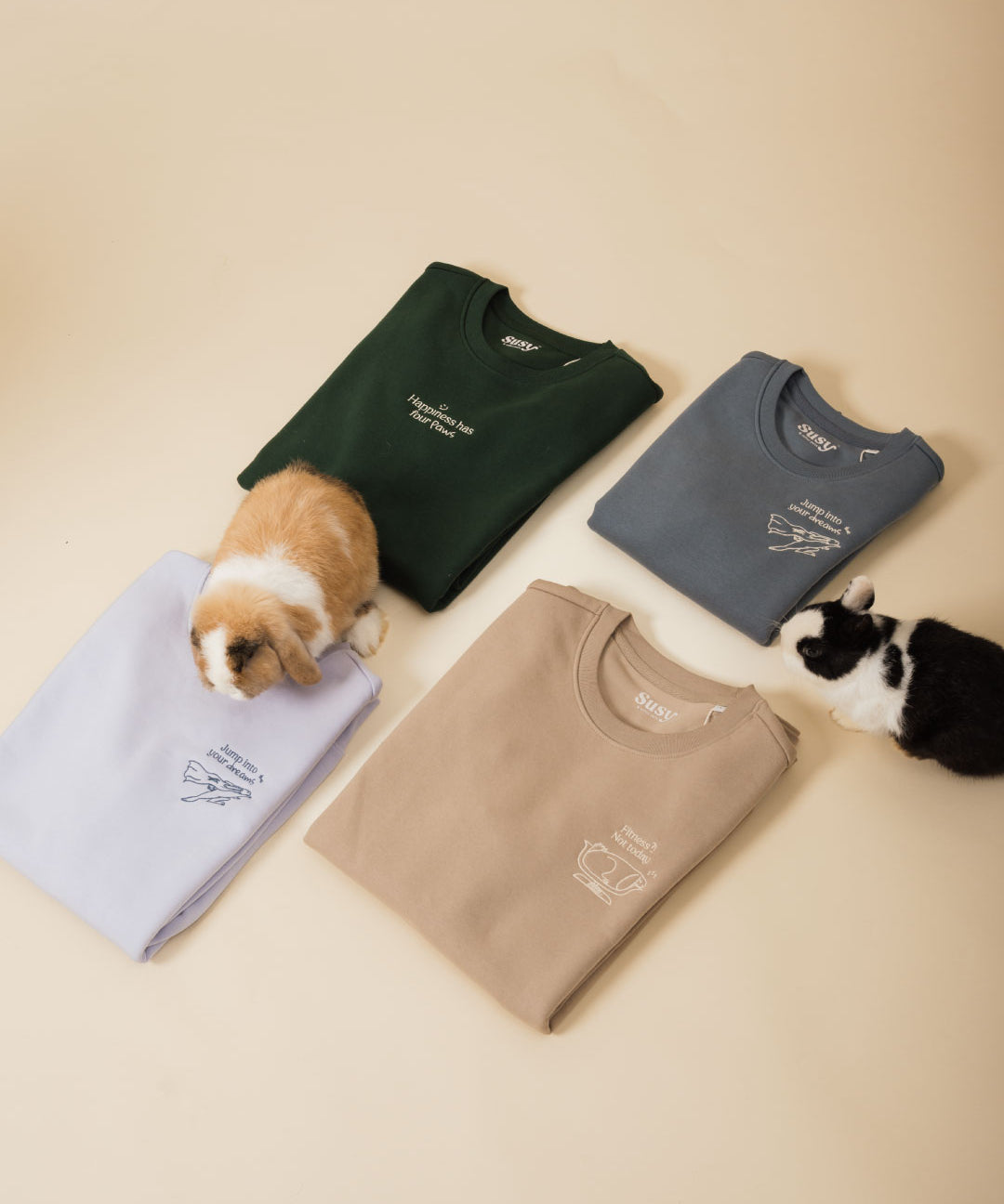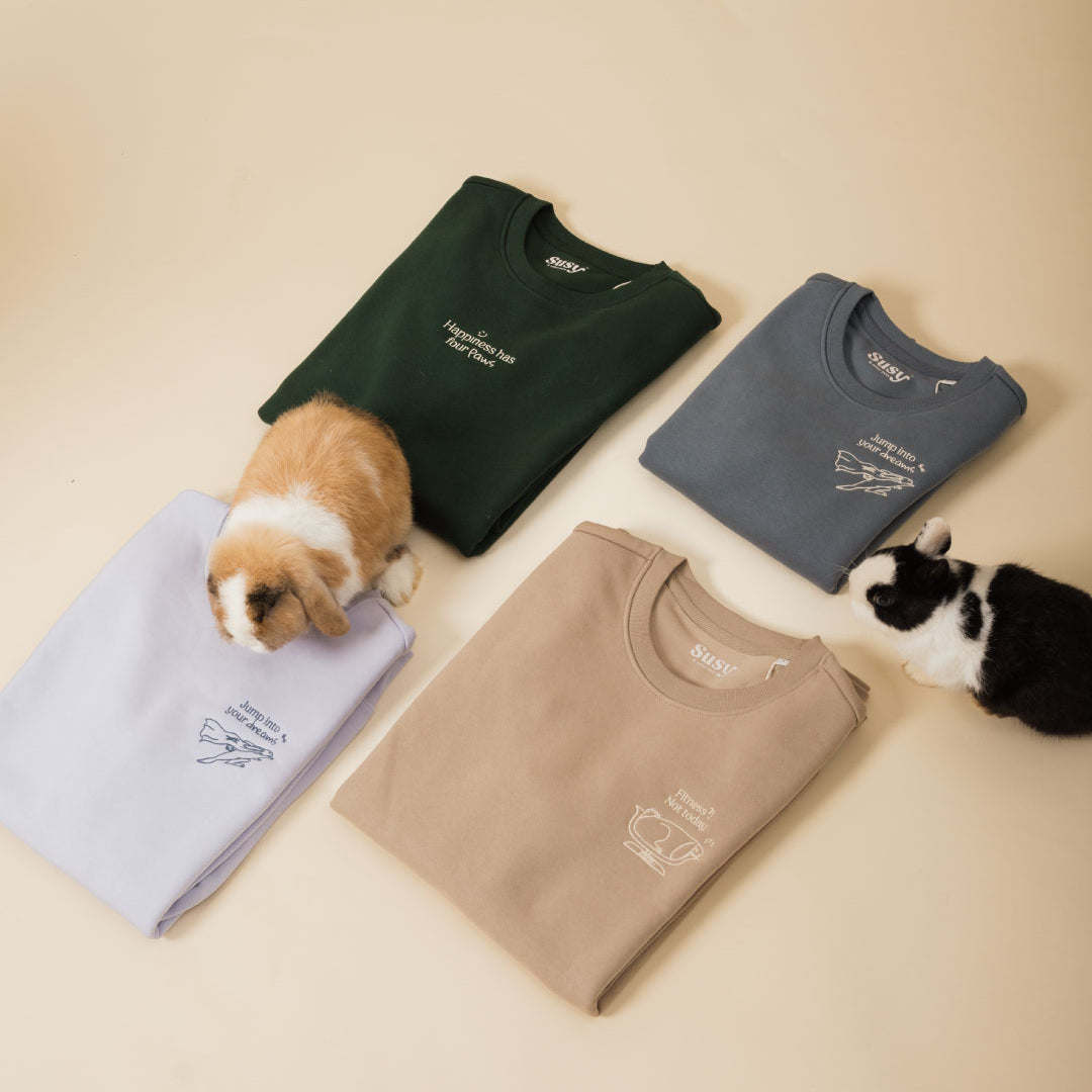 The Superbunny Sweatshirt is a unisex garment with a regular fit, designed for those who always have their head in the clouds and their feet ready to jump.