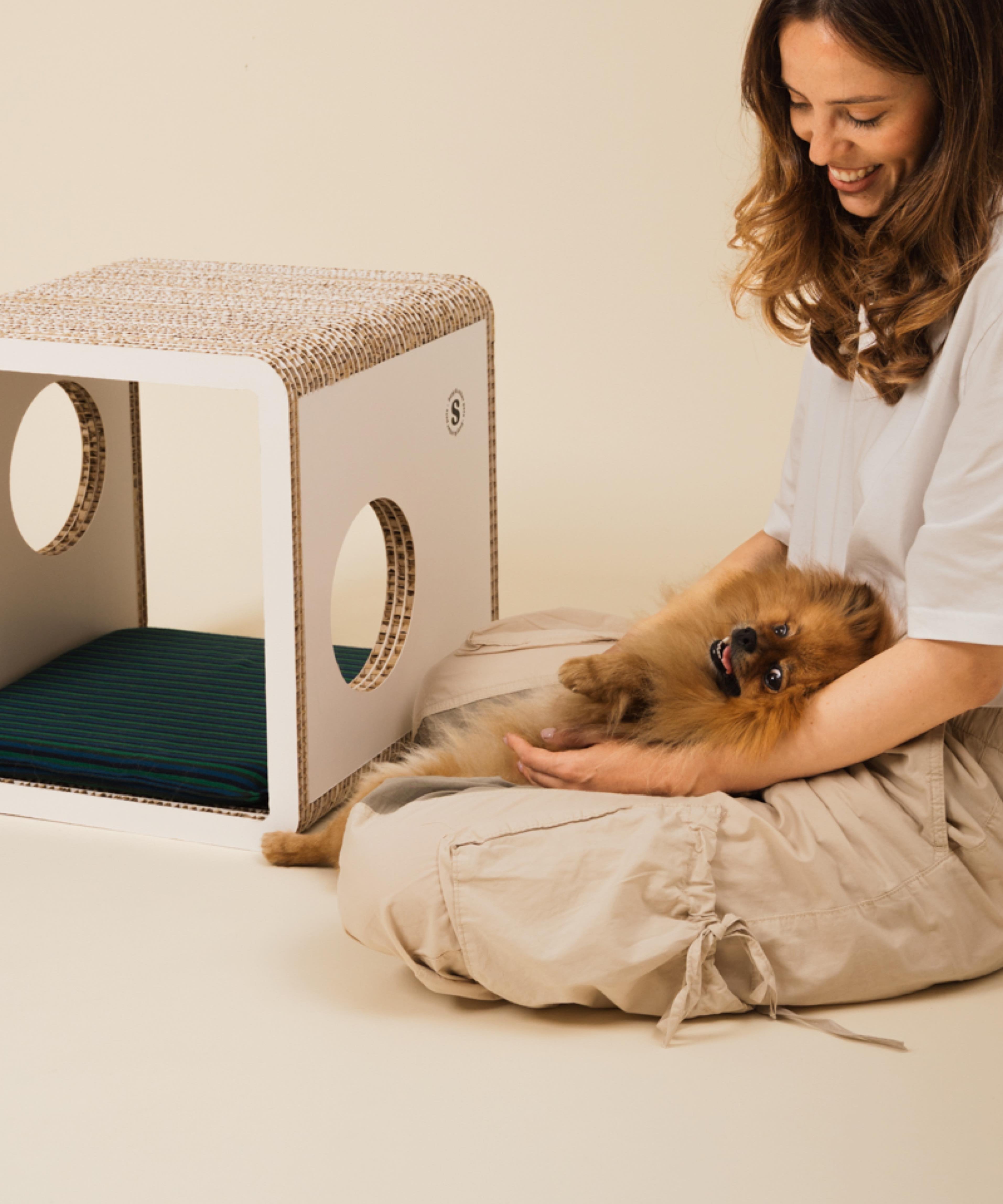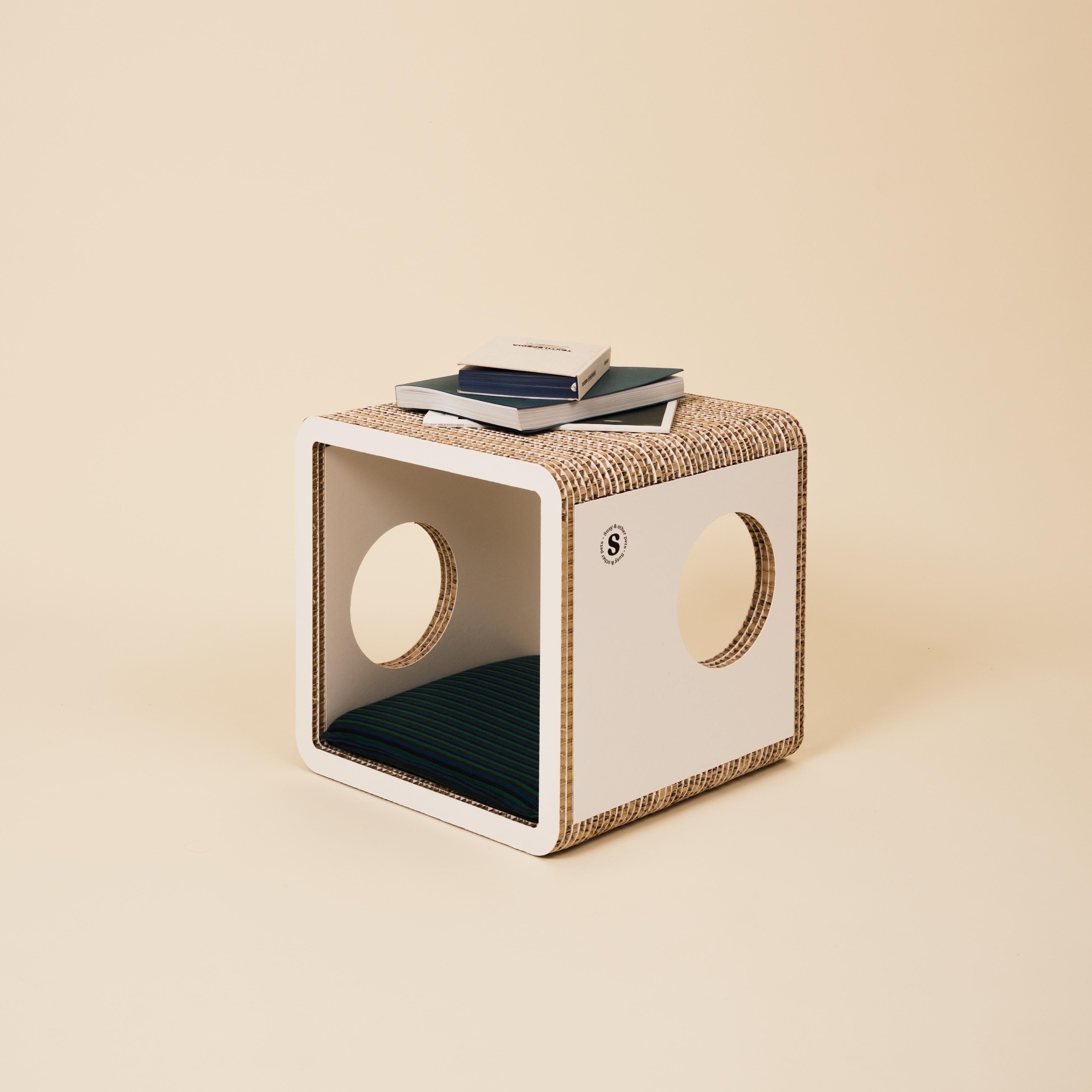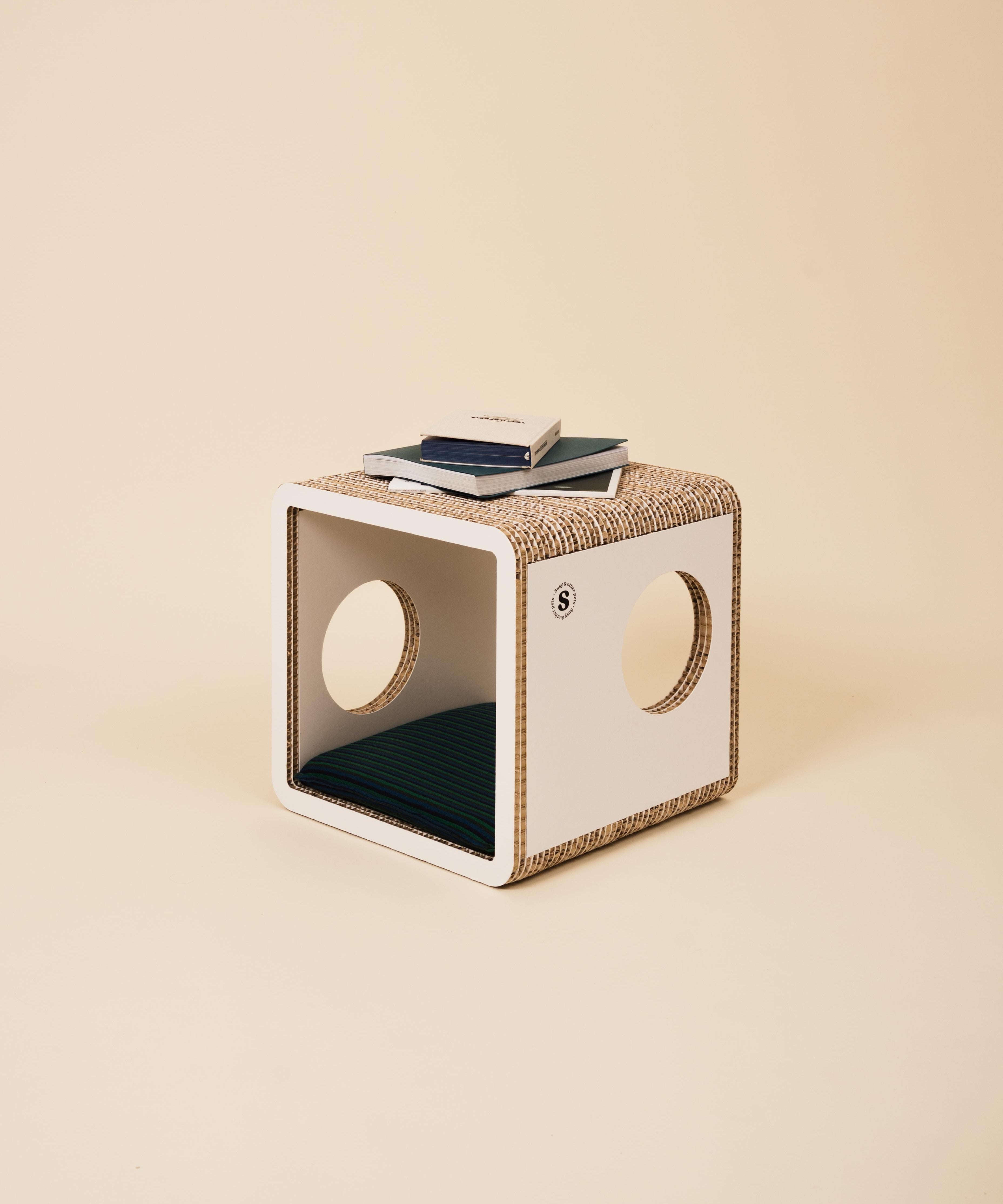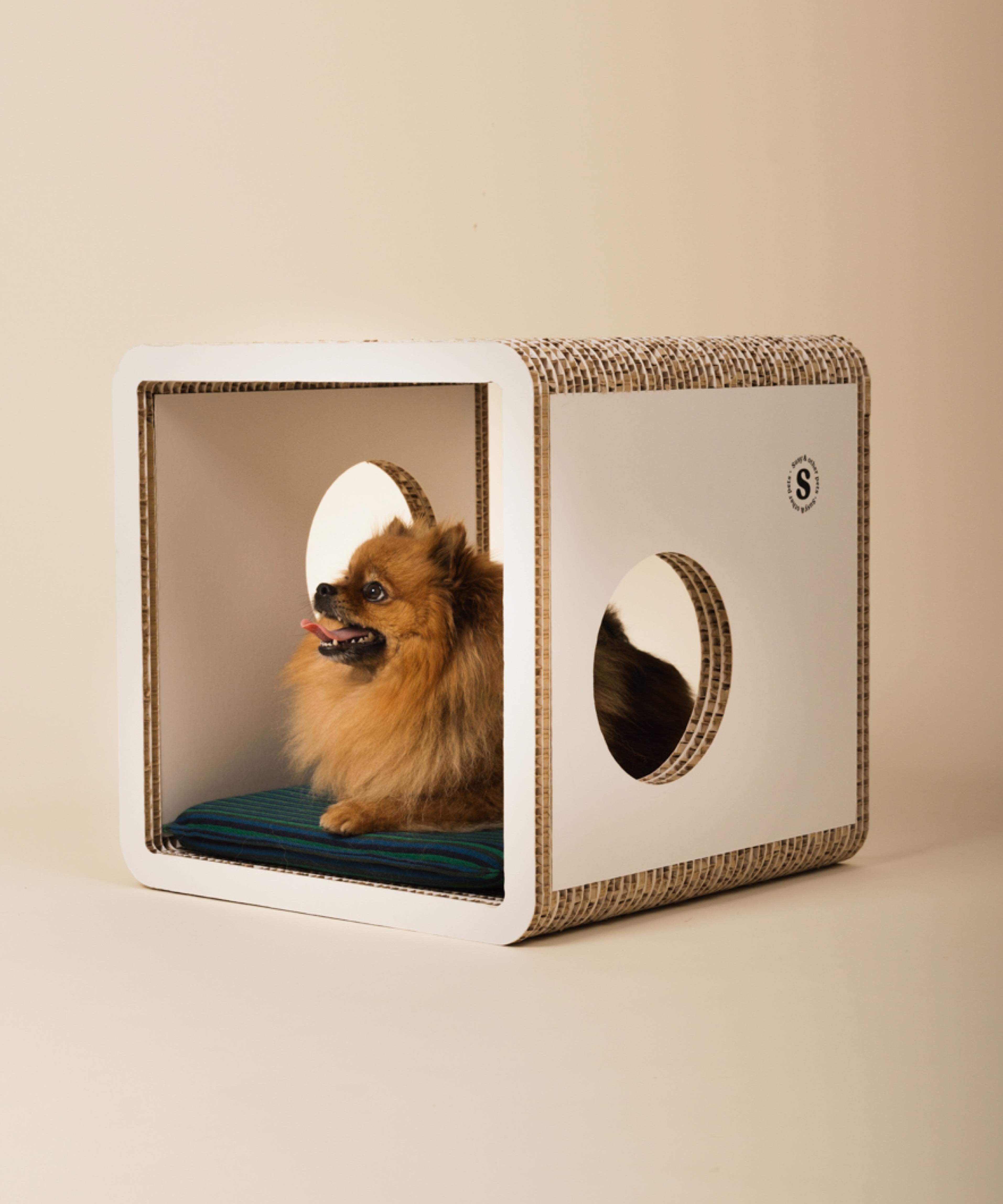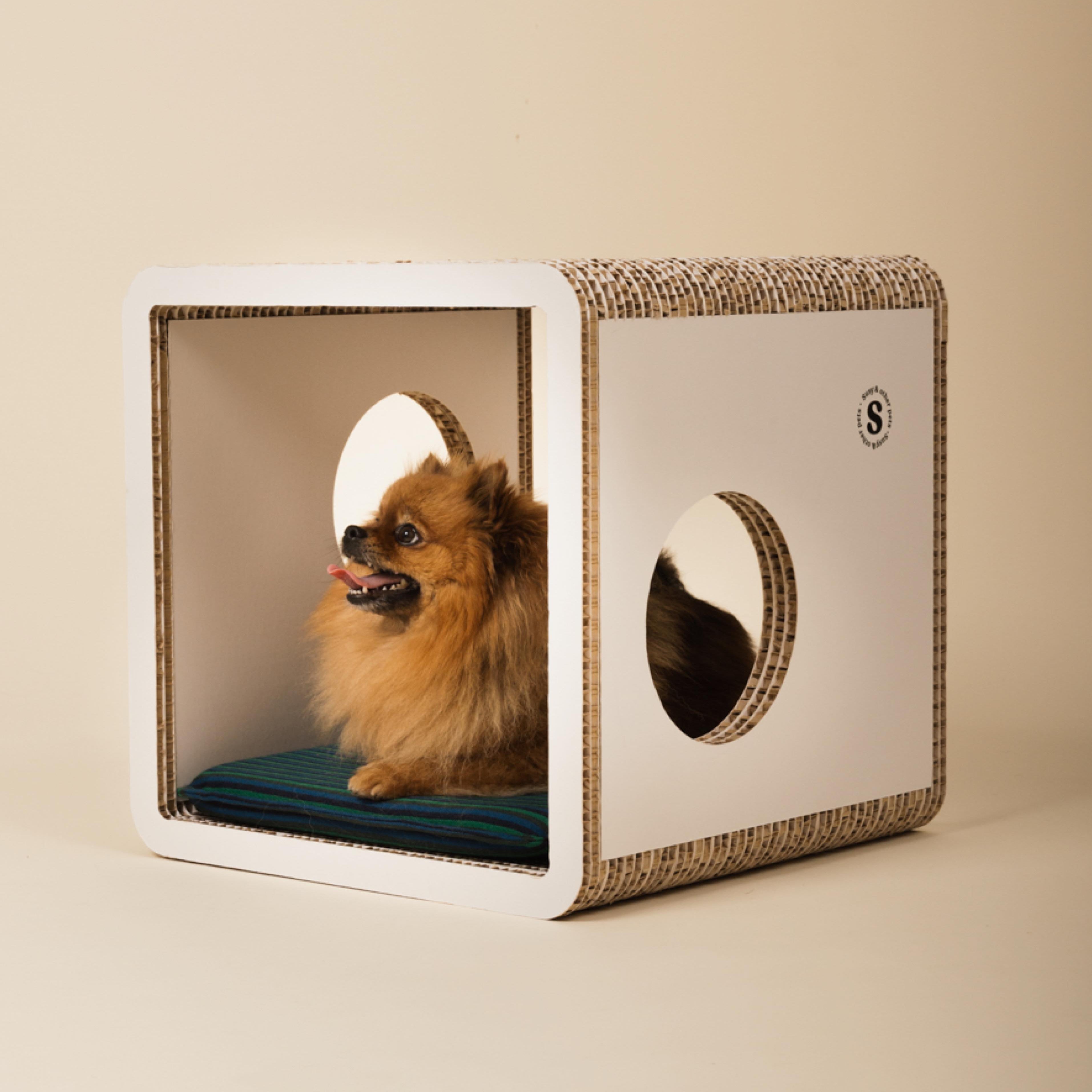 Un mobile-tavolino dal look essenziale che diventa anche un rifugio e angolo relax per il tuo cane di piccola taglia. Più di una semplice cuccia, trasforma il suo spazio in un elemento d’arredo che si armonizza con la tua casa. Realizzato in cartone alveolare FSC, è 100% riciclabile, leggero, resistente e subito pronto all’uso.