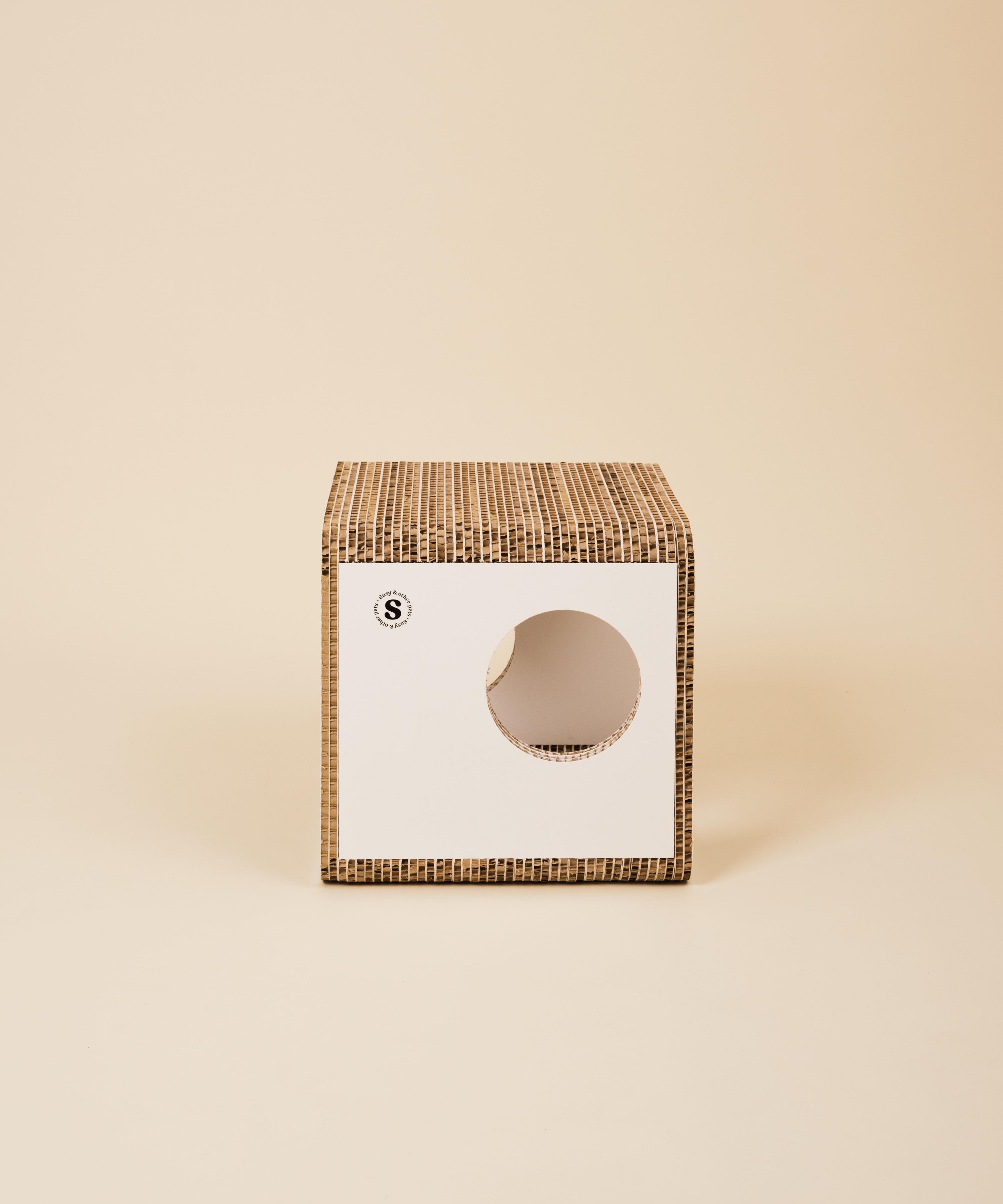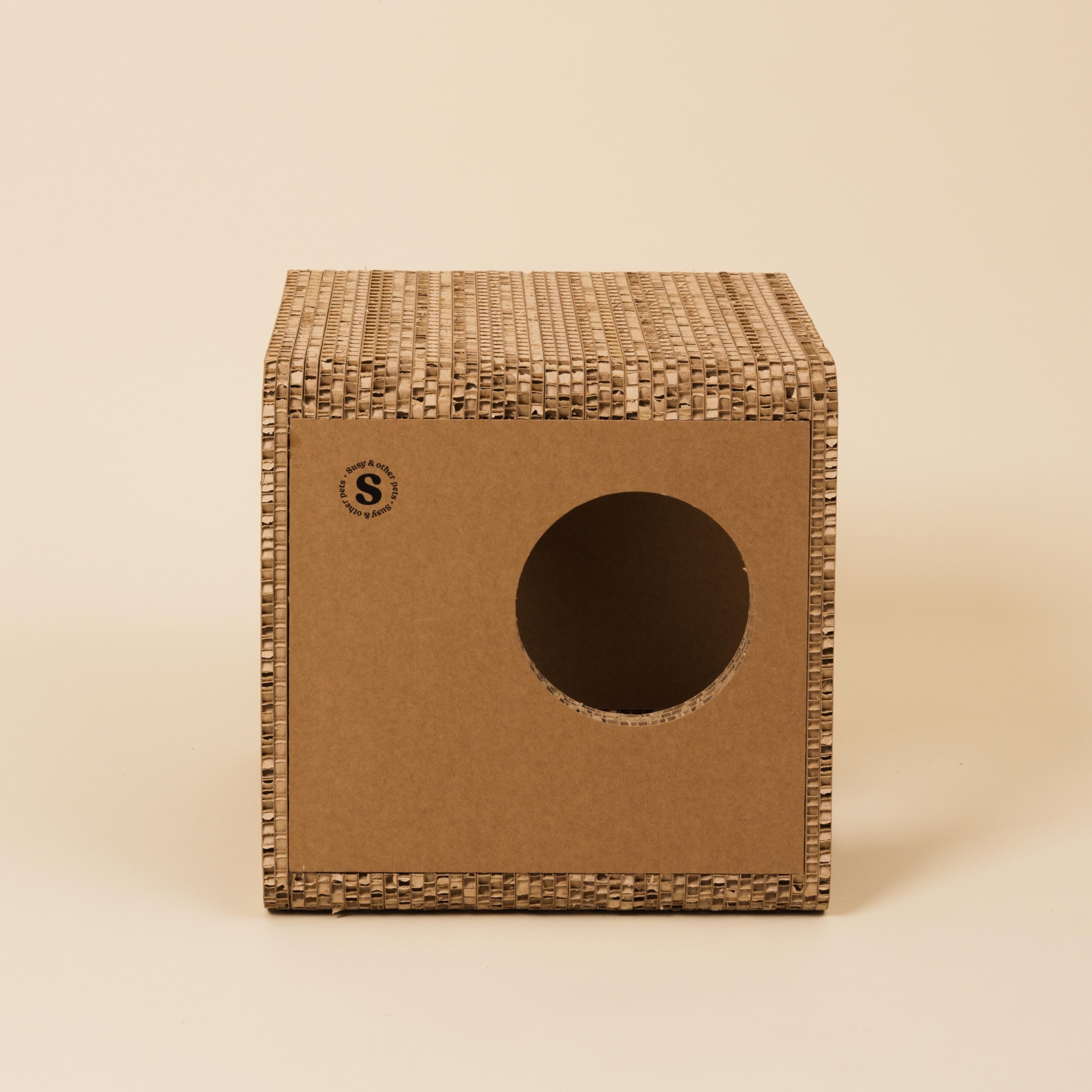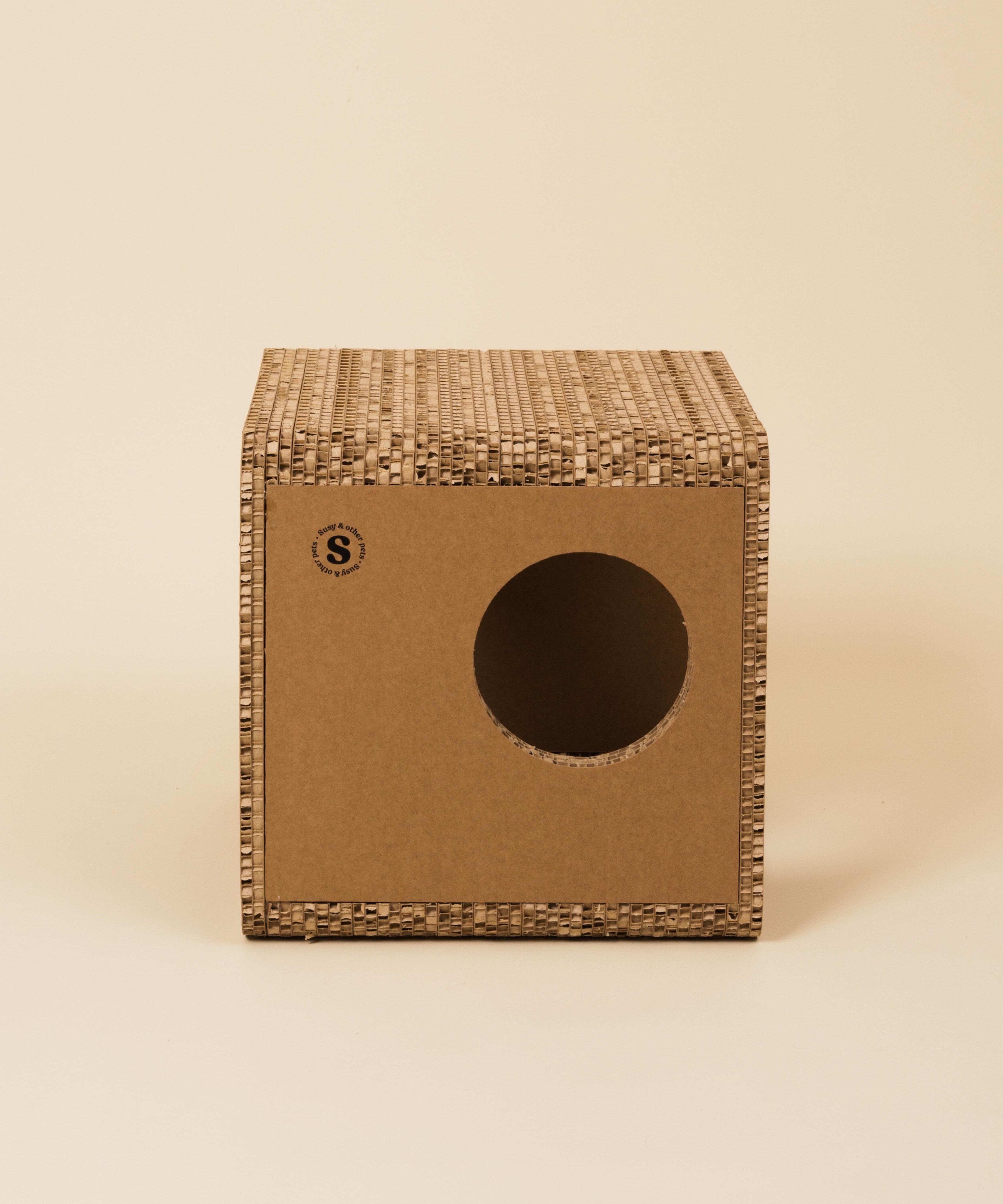 La sostenibilità è parte integrante del progetto Susy®. Il Cubo Tana Cane Toy è realizzato in cartone alveolare 100% certificato FSC, completamente riciclabile e privo di componenti plastici.