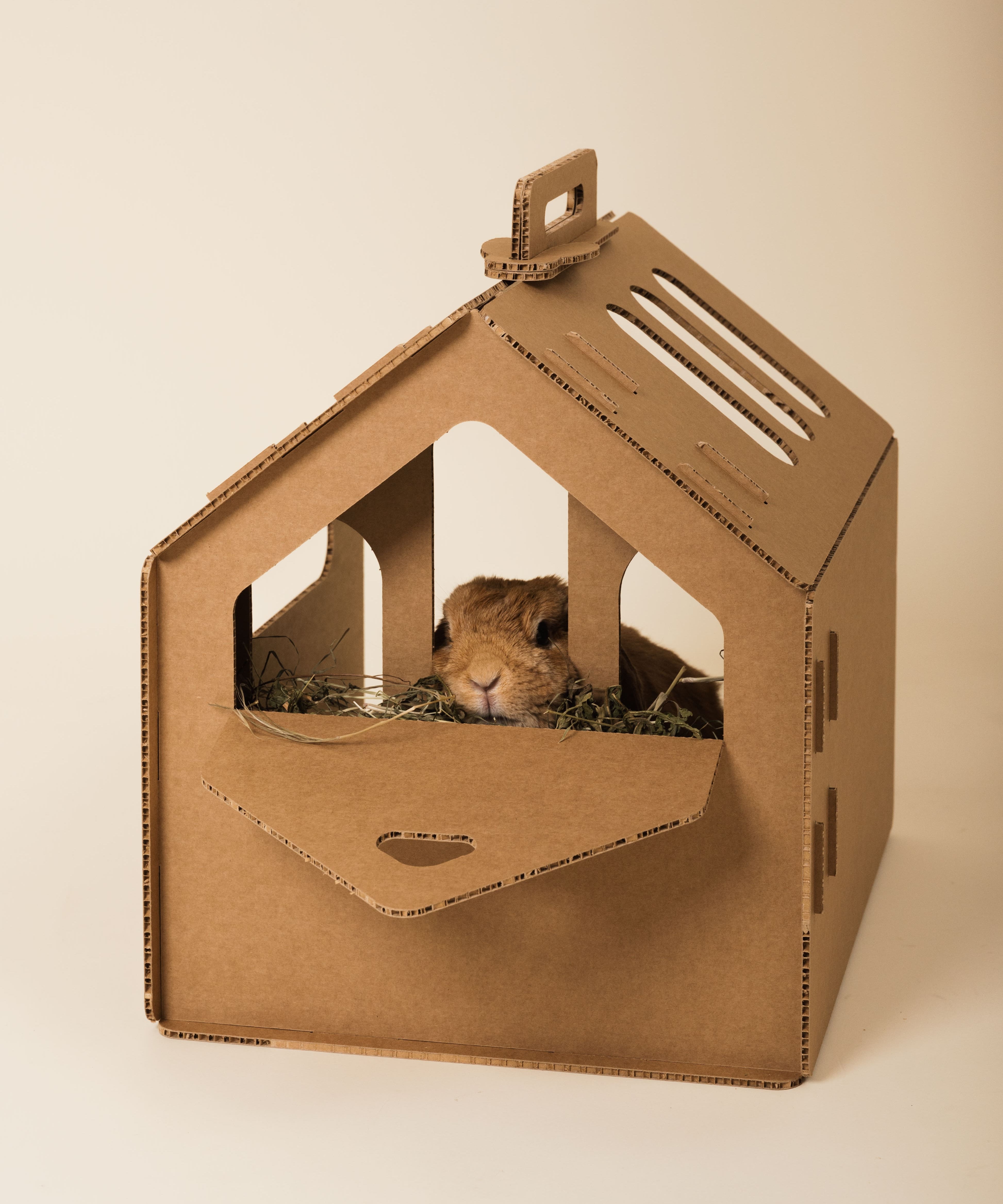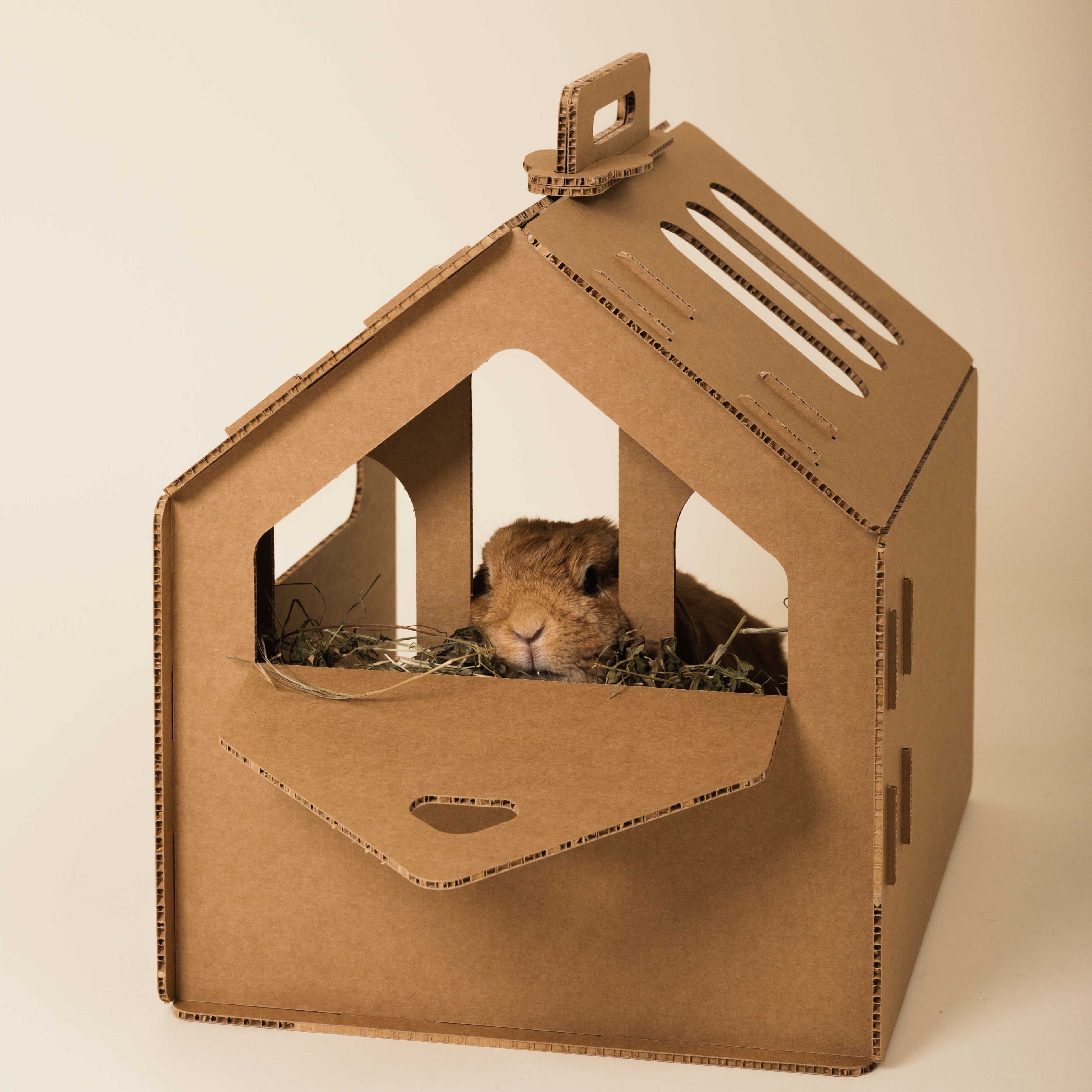 Fieniera da Viaggio in cartone alveolare, montabile in pochi gesti e ideale per conigli liberi.